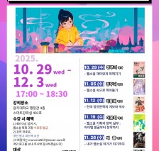 ※ 2025 광주대학교 문예창작과 <청년‧청소년과 함께하는 ‘광주시민 웹소설 특화과정’>이번 특화과정에서는웹소설 작가들과의 만남을 통해 기획과 창작의 과정, 현직 작가의 노하우,그리고 작가로 성장하기까지의 생생한 경험담을 들을 수 있습니다.자신의 글을 발전시키고, 창작의 길을 걷는 이들에게 가장 현실적인 영감과 동기부여가 될 이번 과정.글을 쓰는 즐거움과, 이야기가 완성되어 가는 성취를 함께 느껴보세요. **프로그램 정보**· 기간 : 2025.10.29.(수) ~ 12.3.(수)· 시간 : 17:00 ~ 18:30· 장소 : 광주대학교 행정관 4층 스마트강의실 401호· 대상 : 광주 지역 청년‧청소년· 강의료 : 무료 (선착순 마감) **수강 시 혜택**1) ‘4회 이상’ 참여 시,웹소설 특화 과정 수료증 발급2) 강의 전후로,개인 원고 피드백 시간(※희망자는 아 ...